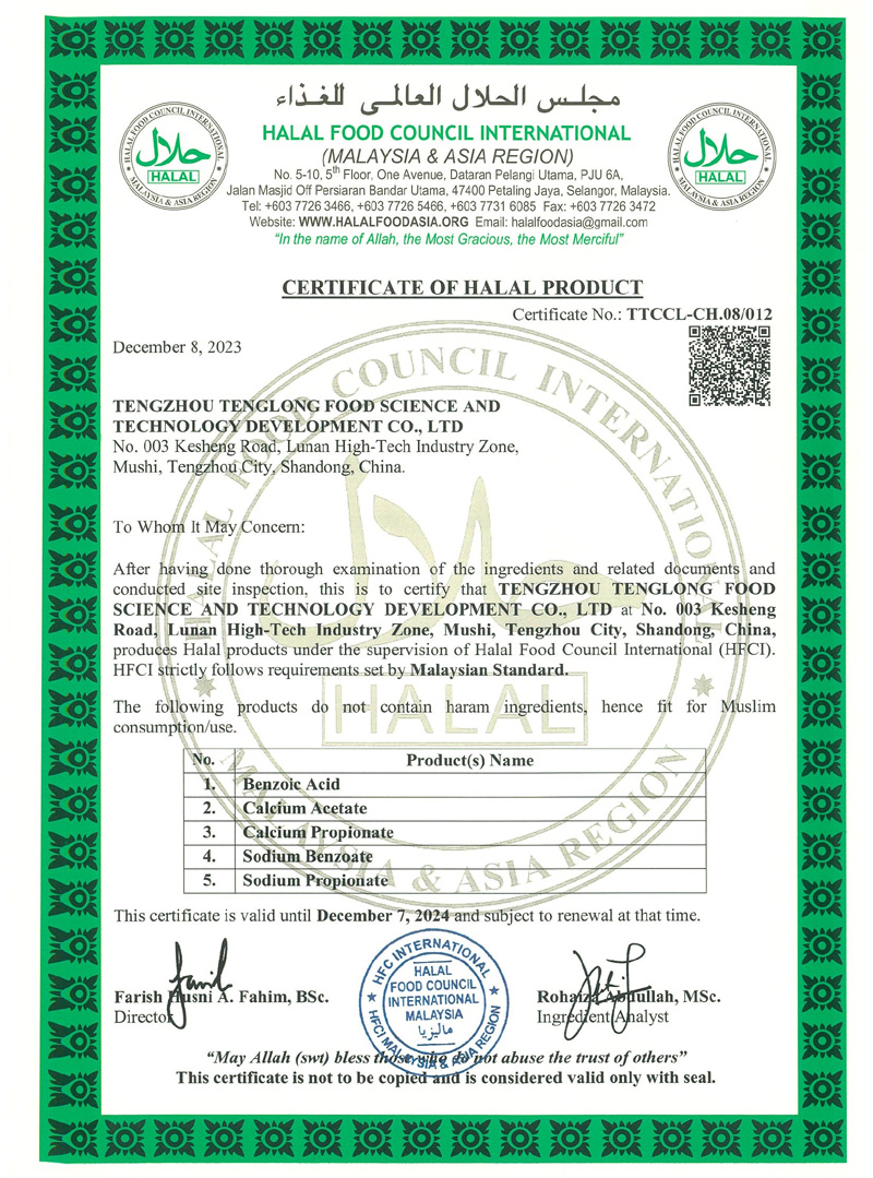 滕州市騰龍食品科技發(fā)展有限公司坐落在山東省滕州市木石鎮(zhèn)魯南高科技化工園區(qū),成立于1996年,前身是滕州市騰龍化工有限責任公司,公司專業(yè)生產 苯甲酸,苯甲酸鈉,丙酸鈣,丙酸鈉和醋酸鈣等系列產品。